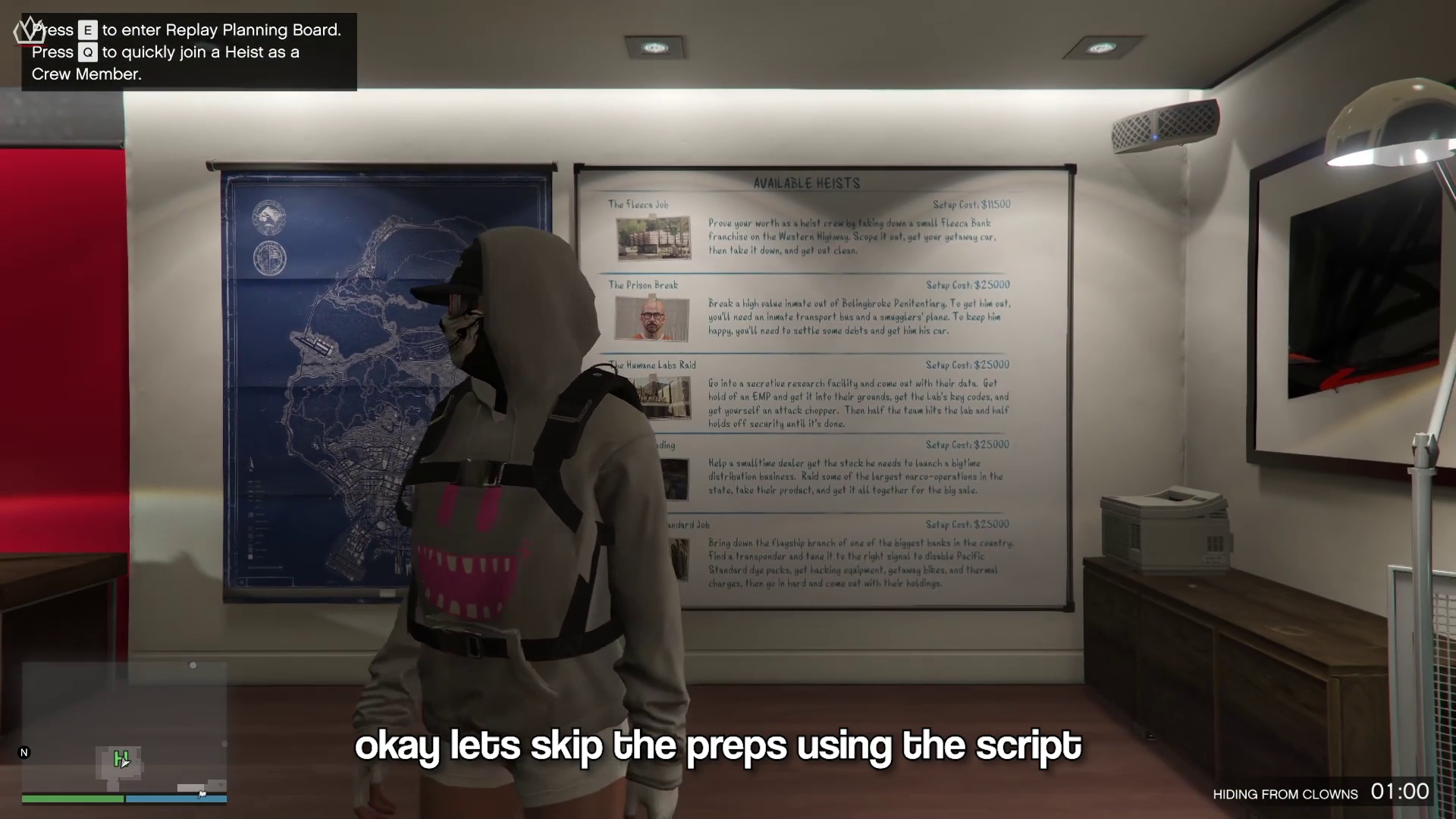 Skip Fleeca Prep: Instantly completes the prep phase of a heist. This allows players the ability to skip the gathering of items, without spending multiple minutes of dealing with the preparations.