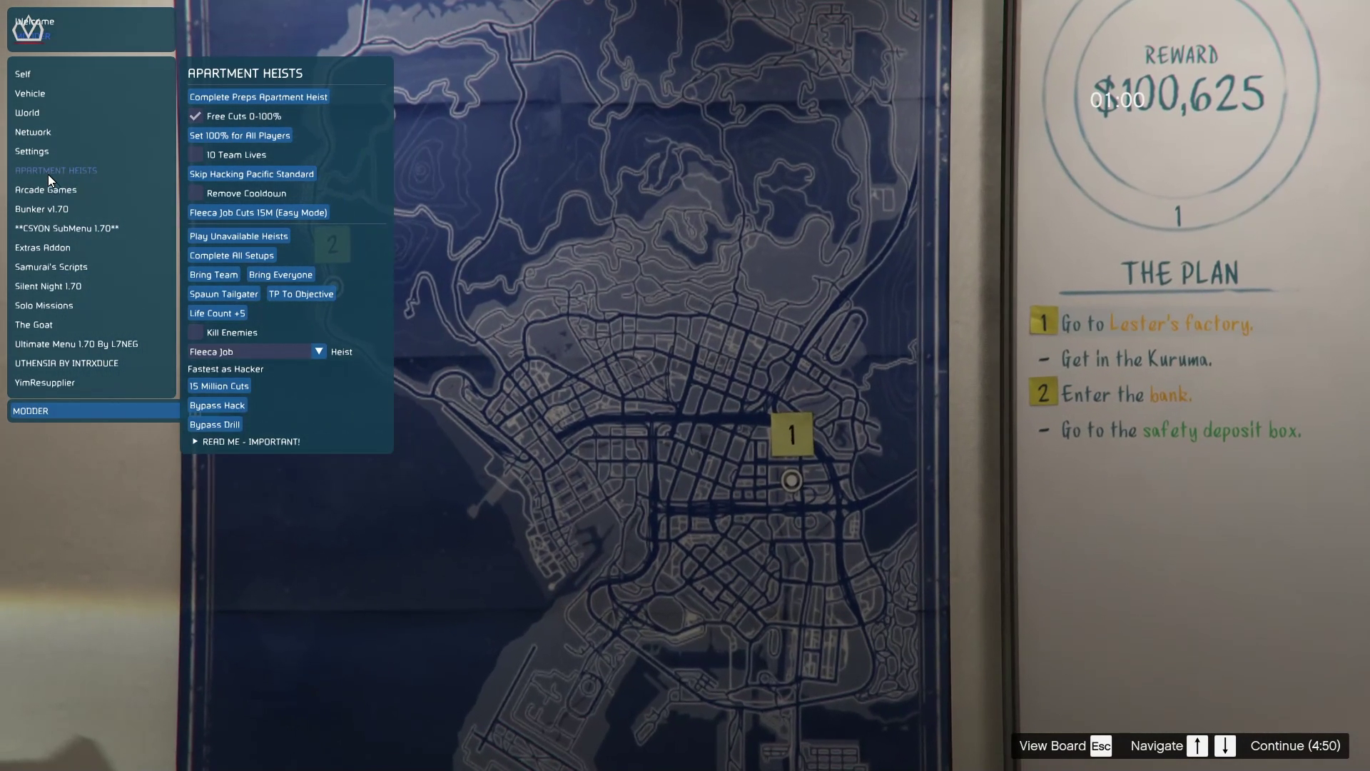 Players can change difficulty mode through the menu, and easily change payouts instantly, without completing the steps of the heist manually.