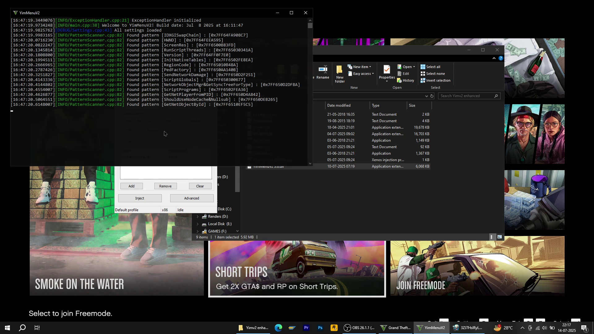 Step 2: In Xenos.exe, select GTA5_Enhanced.exe from the process list. Drag and drop YimMenu.dll into the inject space and hit Inject.