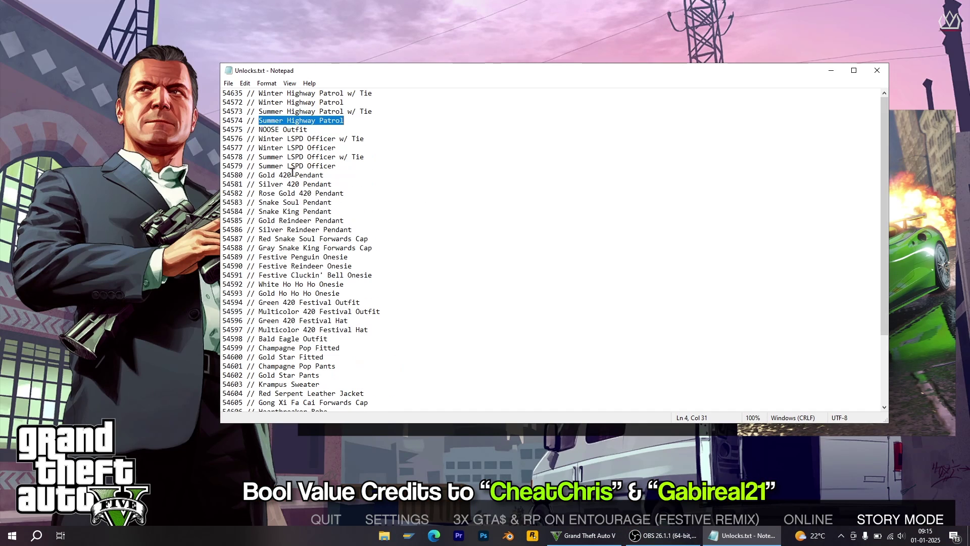 Here is a large list of all the unique clothing, necklaces, hats, and holiday clothing in GTA V, and their packed stat IDs. The IDs and clothing will be used when using modding tools (Lua-based) or unlocker scripts, to unlock clothing that is exclusive or limited time only. This is for educational use of personal use or in a solo session.