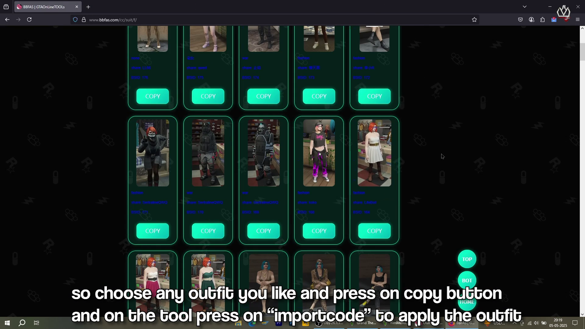 Step 5 : Once the webpage is opened Select any Outfit press on the Copy Code, and on the tool select "Import code" in order to Apply the selection and under GTA 5 Go to your character outfits slots and try to swap any outfits available to see the changes!Β