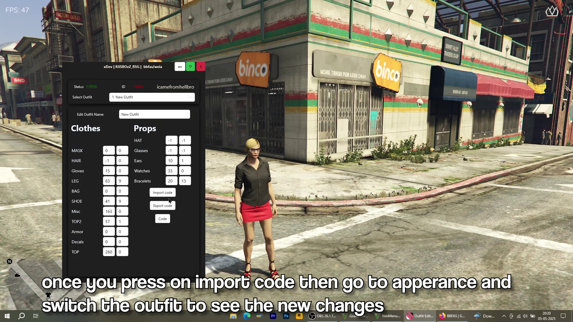 4). Open the Outfit Editor Tool from Binco and Save the code and Apply the changes to your character this way this will save up permanently and you will never gonna loose tjhem.